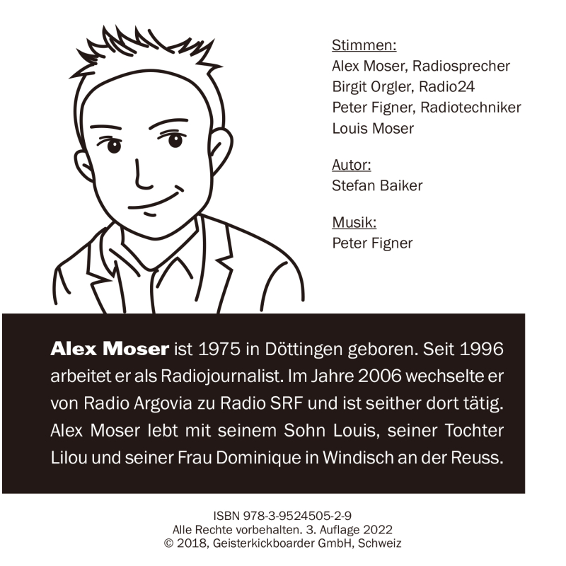 Biografie Alex Moser, Radiosprecher: ist 1975 in Döttingen geboren. Seit 1996 arbeitet er als Radiojournalist. Im Jahre 2006 wechselte er von Radio Argovia zu Radio SRF und ist seither dort tätig. Alex Moser lebt mit seinem Sohn Louis, seiner Tochter Lilou und seiner Frau Dominique in Windisch an der Reuss.